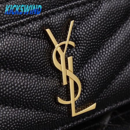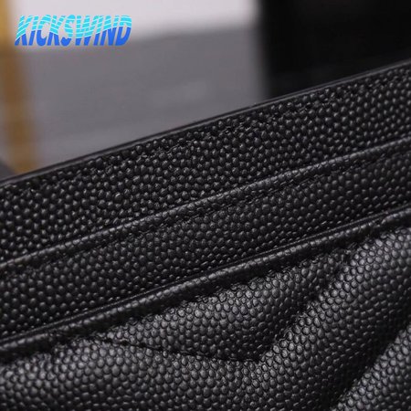 Saint Laurent Grain De Poudre Matelasse Chevron Monogram Credit Card Case Black
