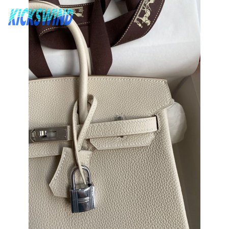 Hermes Craie Togo Birkin 25 Palladium Hardware