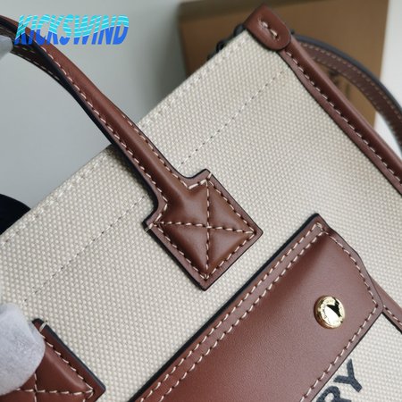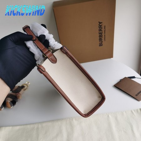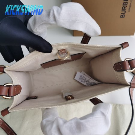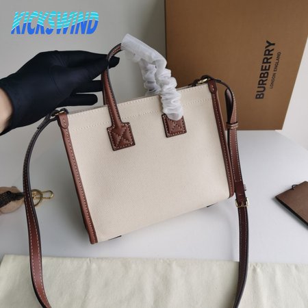 Burberry Two-tone Canvas And Leather Mini Freya Tote Natural/Tan 80441431