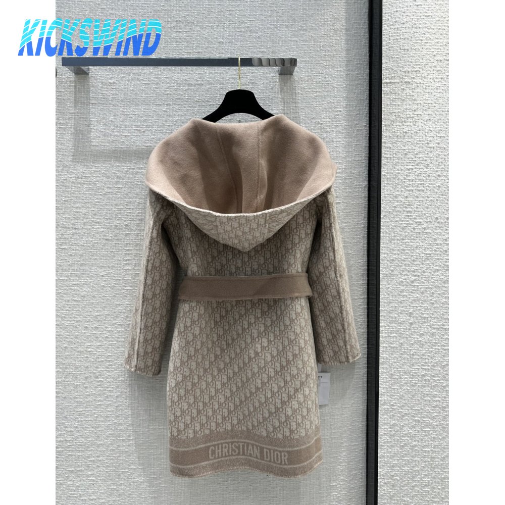 Dior Logo Reversible Wool Mid-Length Hooded Coat