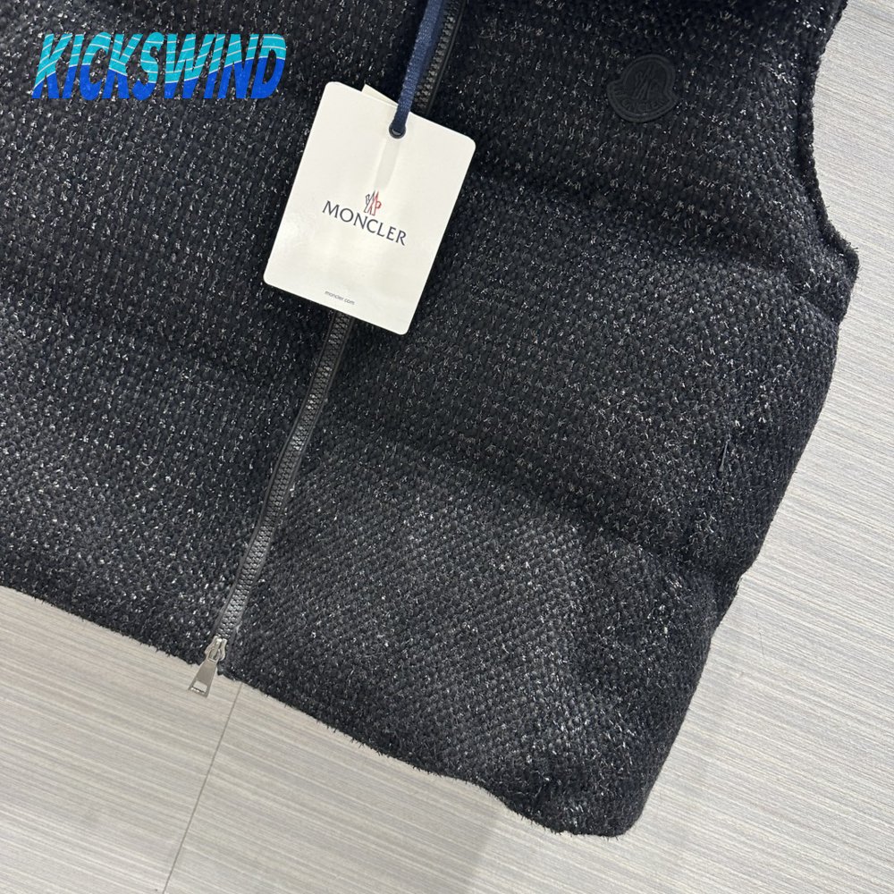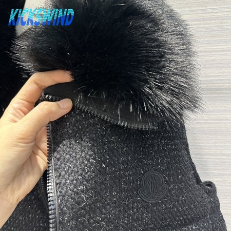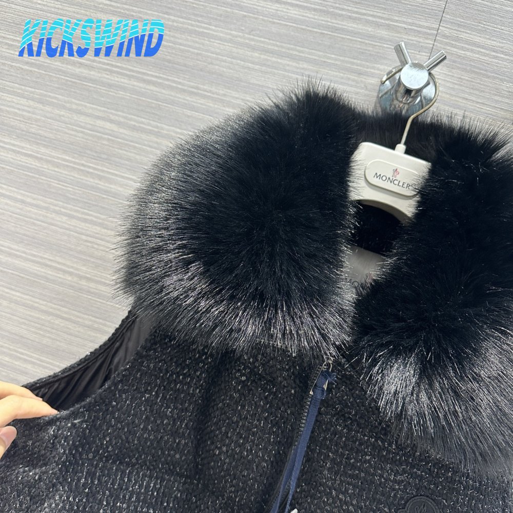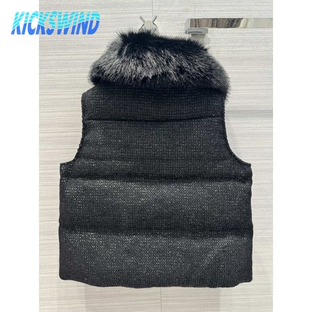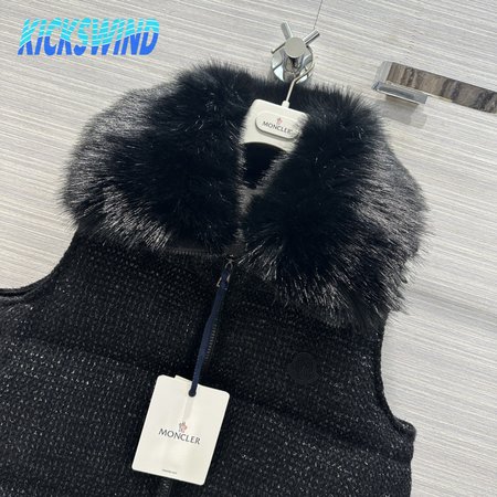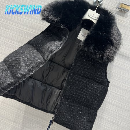 Moncler Carrelet Fur-Collar Tweed Vest Black Women's
