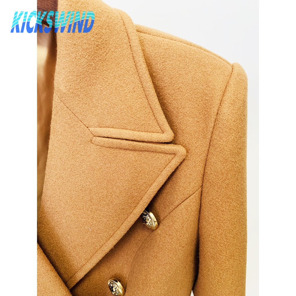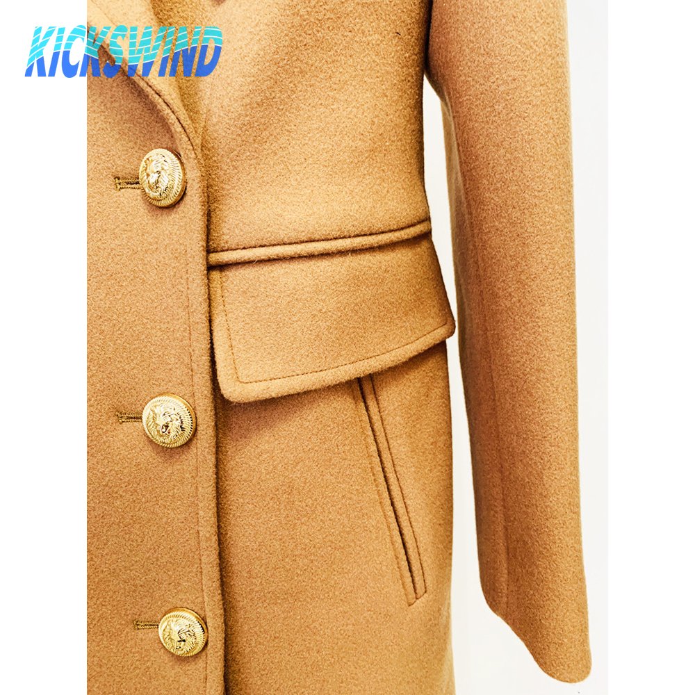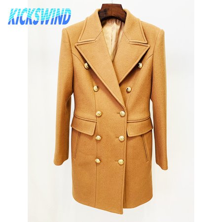 Balmain Black Double Breasted Gold Button Wool Coat