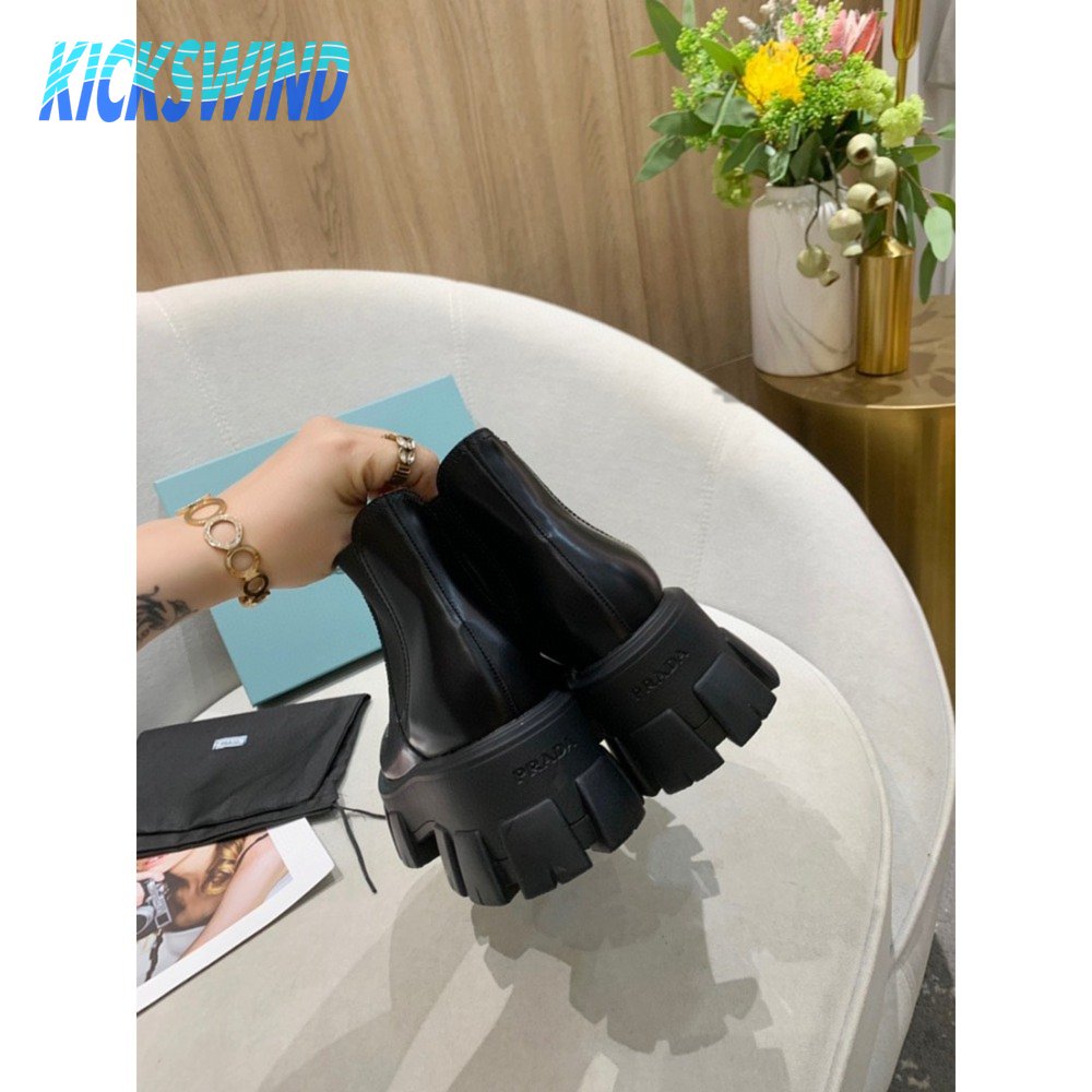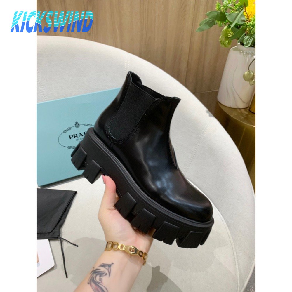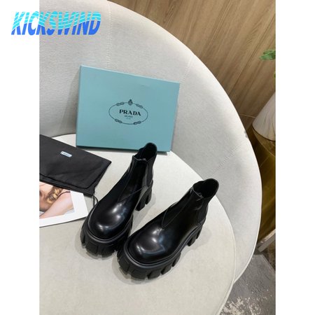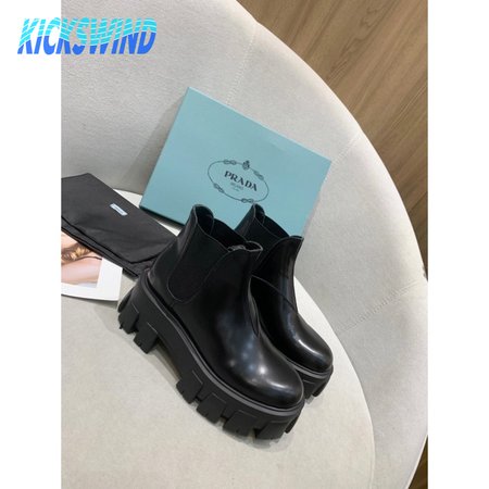 Prada Monolith Brushed Leather Chelsea Boots Black 35-40