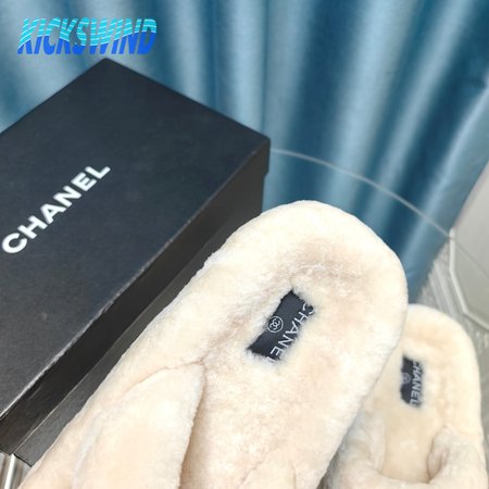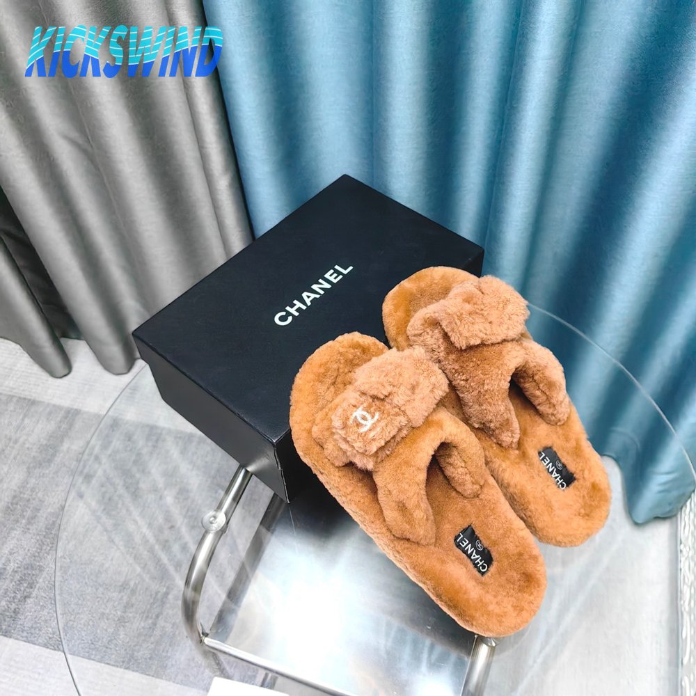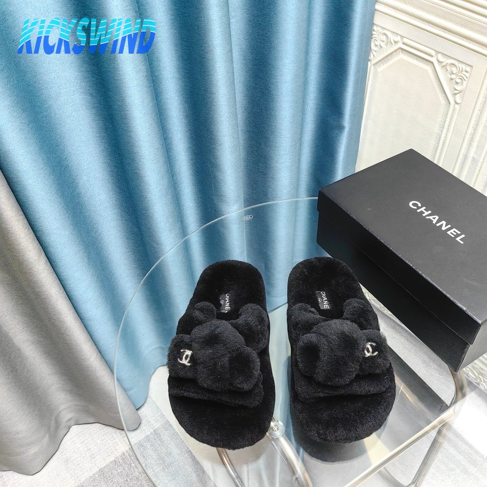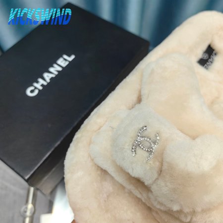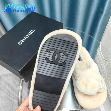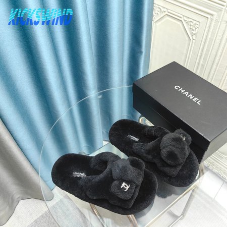 Chanel Women's Cross Band Slippers Fuzzy Slippers