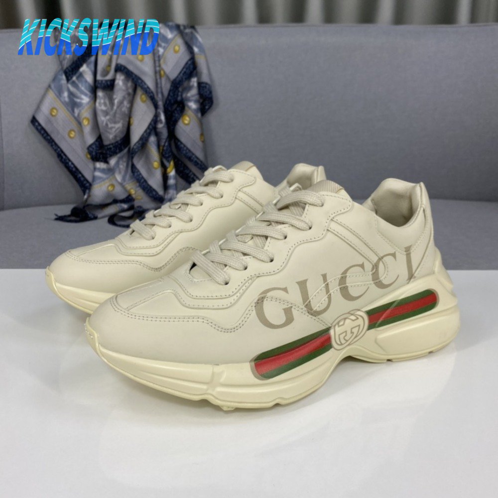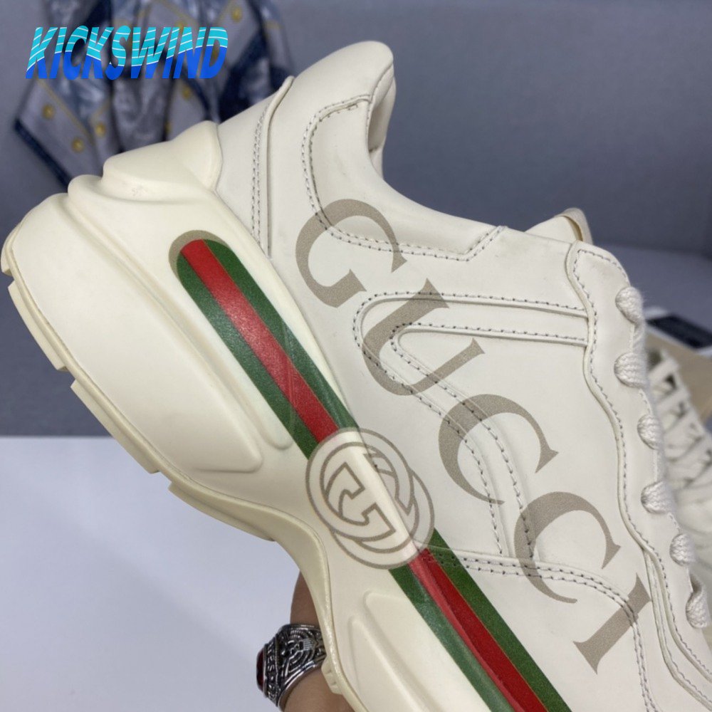 Women's Rhyton Gucci Logo Leather Sneaker