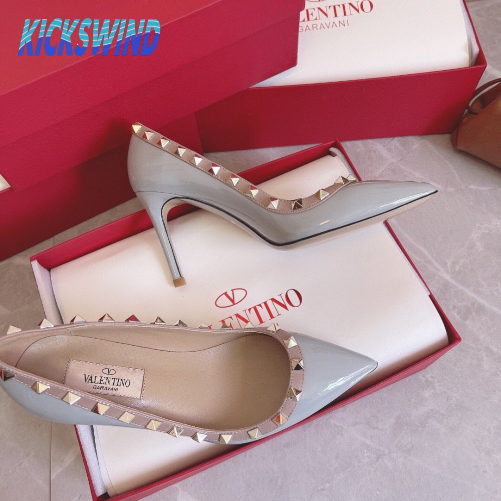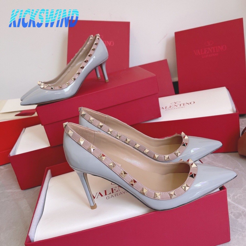 Valentino Garavani Grey & Pink Valentino Garavani Rockstud Heels