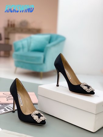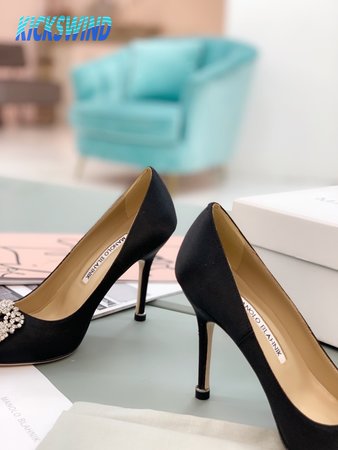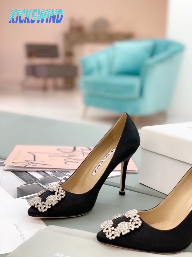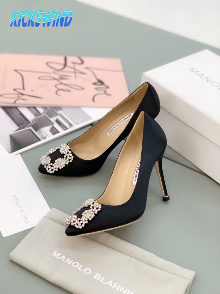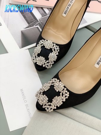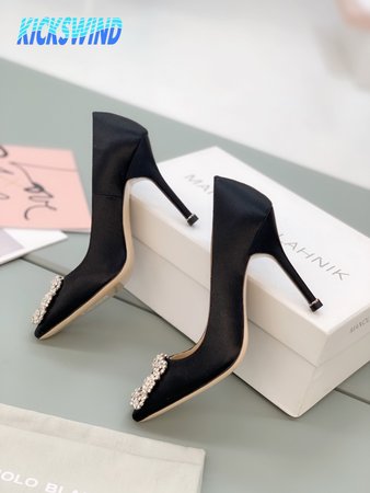 Manolo Blahnik Hangisi Black Satin Jewel Buckle Pumps 35-39