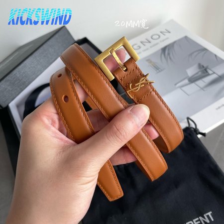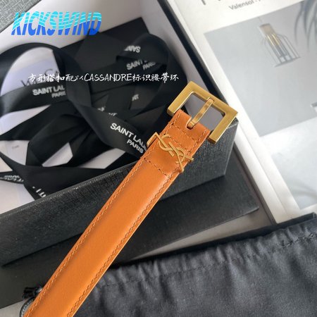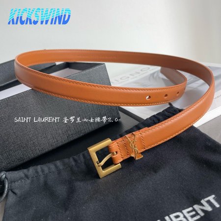 Saint Laurent Thin Brown Belt With Square Buckle 2.0cm